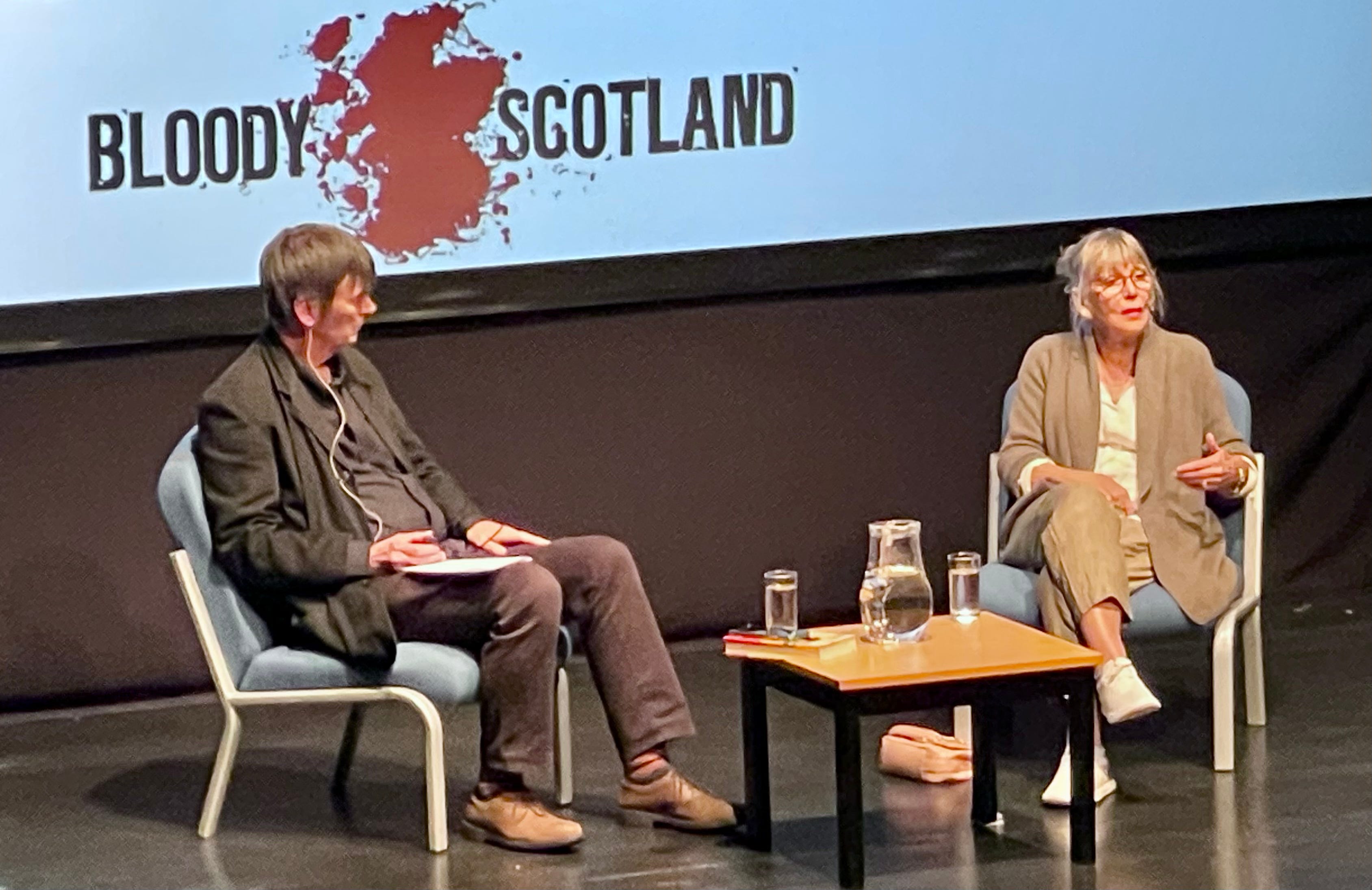 Next was Ian Rankin, now Sir Ian Rankin, interviewing Kate Atkinson. Rarely giving interviews, this was revealing, as Atkinson seems abashed by her own skills, dismissing her talent in creating character-driven crime books.